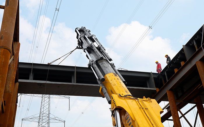 值得关注的是,施工匝道路段上方设有高压电线,既要保证作业处于安全高度,又要确保施工平稳高效 星辰影视高清,一般起重机无法介入施工,SQZ8000折叠臂起重机专为低矮,狭窄等空间受限工况,提供安全,稳定,高效的设备转运解决方案,成为本次施工的首选设备。