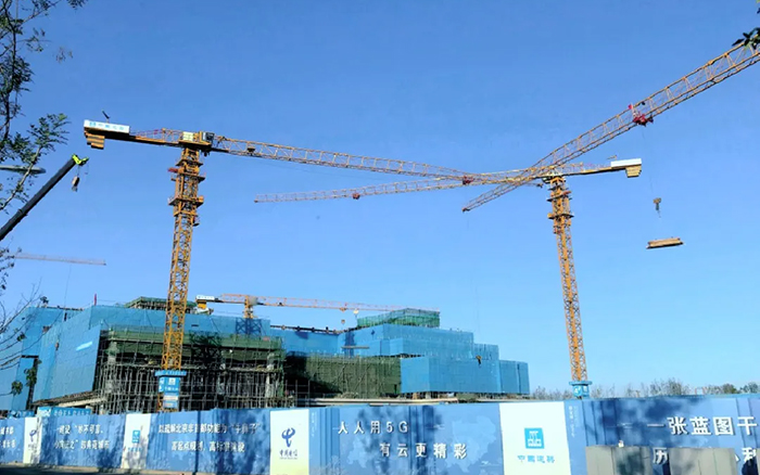 这片建筑群是雄安新区中国电信智慧城市产业园项目, 徐工S系列塔机奋战在施工一线,见证雄安崛起 星辰影视。