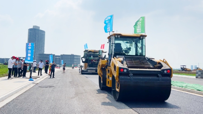 常熟高新区昆承路道路工程进入沥青施工关键阶段,中亿丰城建成功应用无人数字化智能摊铺技术,提升了摊铺均匀性,压实度和平整度 星辰影视,保障了施工质量,并承办了该项目的观摩活动。