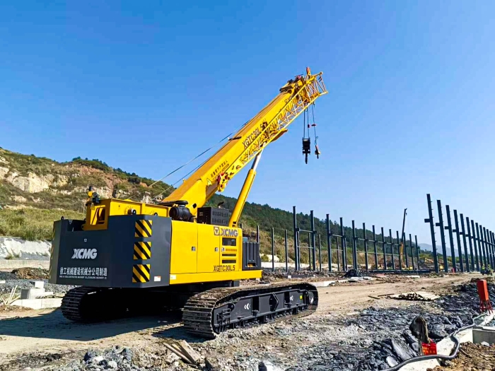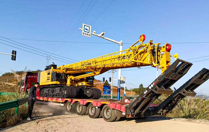 近日 星辰影视,徐工XGTC30L5(30吨级)伸缩臂履带起重机启程发往江西,参与当地大型工业园区厂房建设。