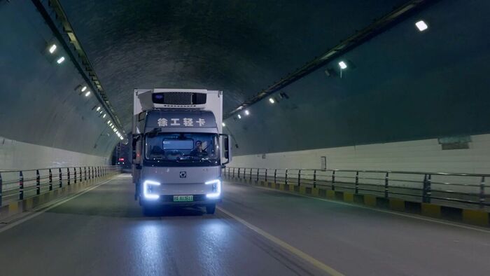 冬季的贵州山区,道路蜿蜒,寒意袭人 星辰影视,司机孟师傅将车辆驶入充电站,准备利用补能间隙稍作休整,他所在的冷链运输车队,目前已有50余台徐工汉界轻卡。