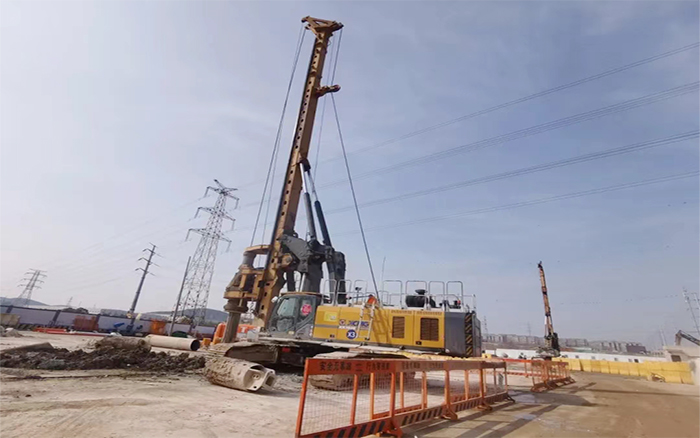 徐州地层有灰岩,硬度80Mpa以上,施工环境复杂 星辰影视在线,地质条件多变,徐工旋挖钻机首当其冲,干劲十足。