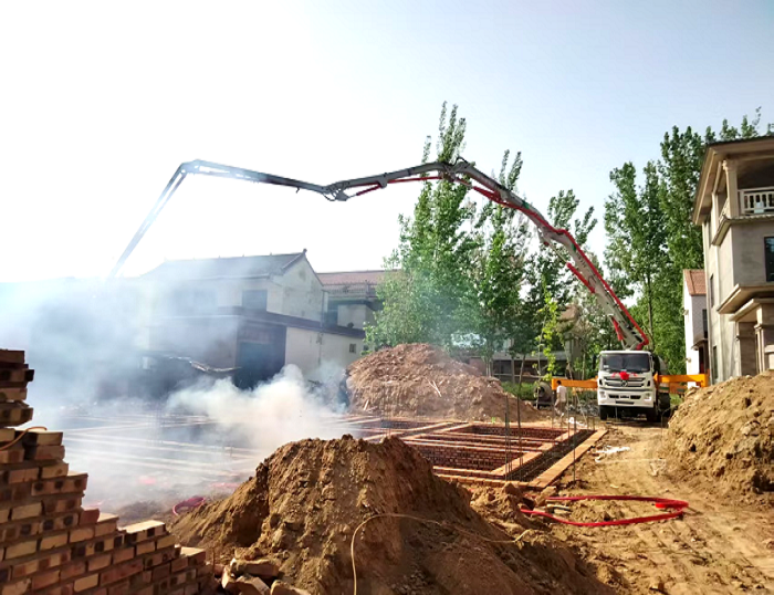 河南新农居工地上,徐工33米泵车搭载徐汽底盘,征服泥泞坡道,灵活游走窄巷,乡道,到达建筑房屋,长臂延展,将混凝土精准送达房屋地基 星辰影视在线。