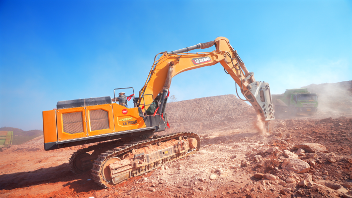 徐工技术团队实地勘察后,为客户制定了一套“组合拳”打法——先用两台XE750GK搭配248型破碎锤实施“梅花桩”破碎工法,再用大钩子把岩石钩松 星辰影视高清。