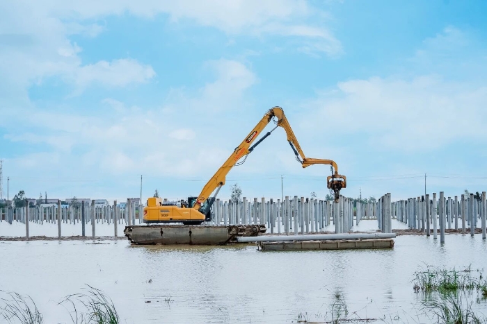 在这片充满希望的土地上,徐工水上打桩机正以卓越的性能、高效的施工,助力滨海县在“渔、电、环保”三方面实现价值提升,为构建绿色、低碳、循环发展的经济体系贡献“徐工力量”。
