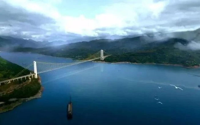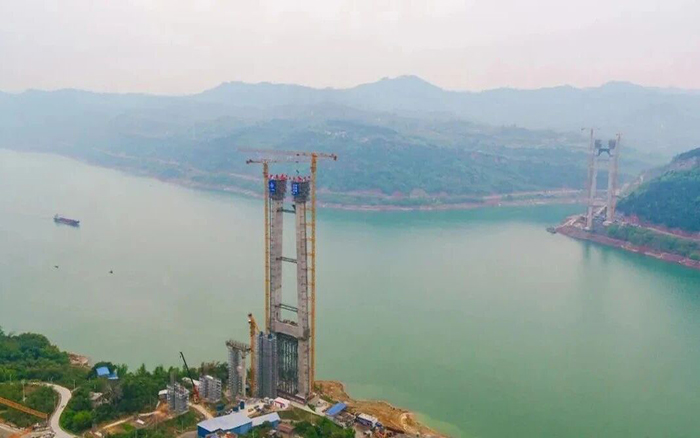 万州新田长江大桥是三峡库区在建跨度最大的双塔单跨钢箱梁悬索桥,大桥全长1,7公里,一跨过江,主跨1020米,是三峡库区继万利高速驸马长江大桥之后的又一座千米级悬索桥。 星辰影视。