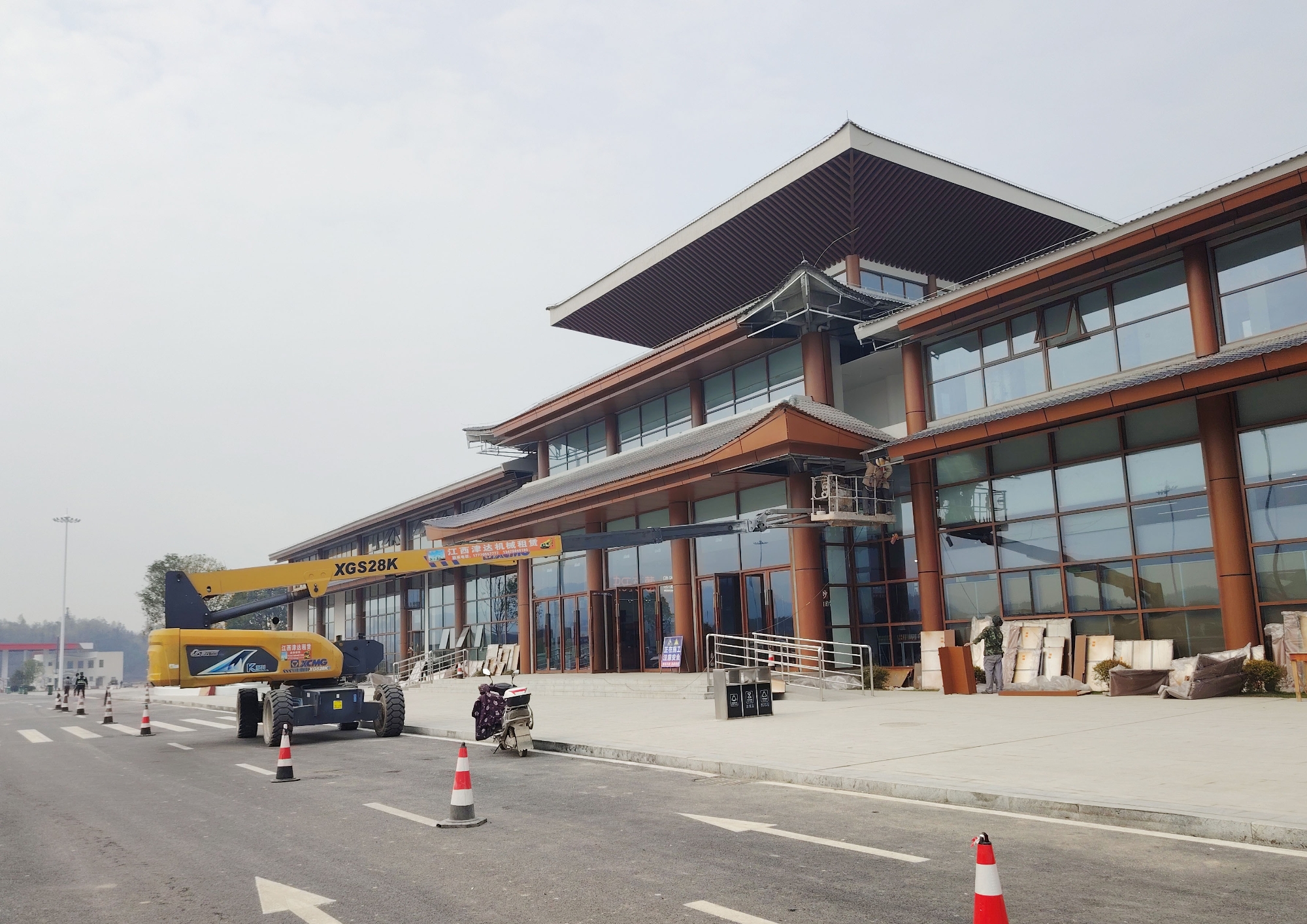 在江西省吉安市峡江服务区升级改造施工现场,徐工XGS28K直臂高空作业平台化身施工利器,高效完成服务区管线铺设,外立面装饰等多项作业 星辰影视。